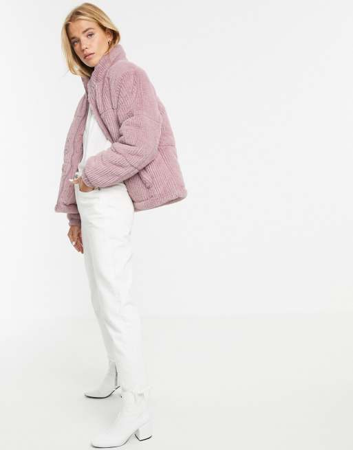 New Look faux fur cord puffer jacket in light pink ASOS Very well made.