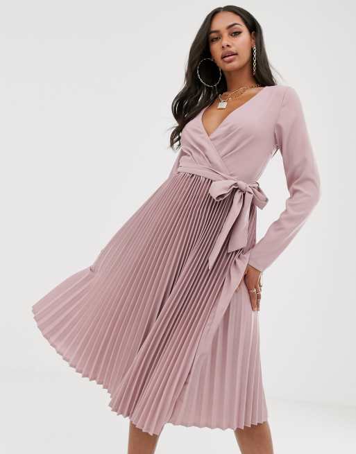 PrettyLittleThing exclusive pleated wrap midi dress in lilac ASOS Very well made.