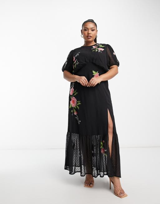 ASOS DESIGN Curve dobby chiffon puff sleeve maxi tea dress with Very well made.